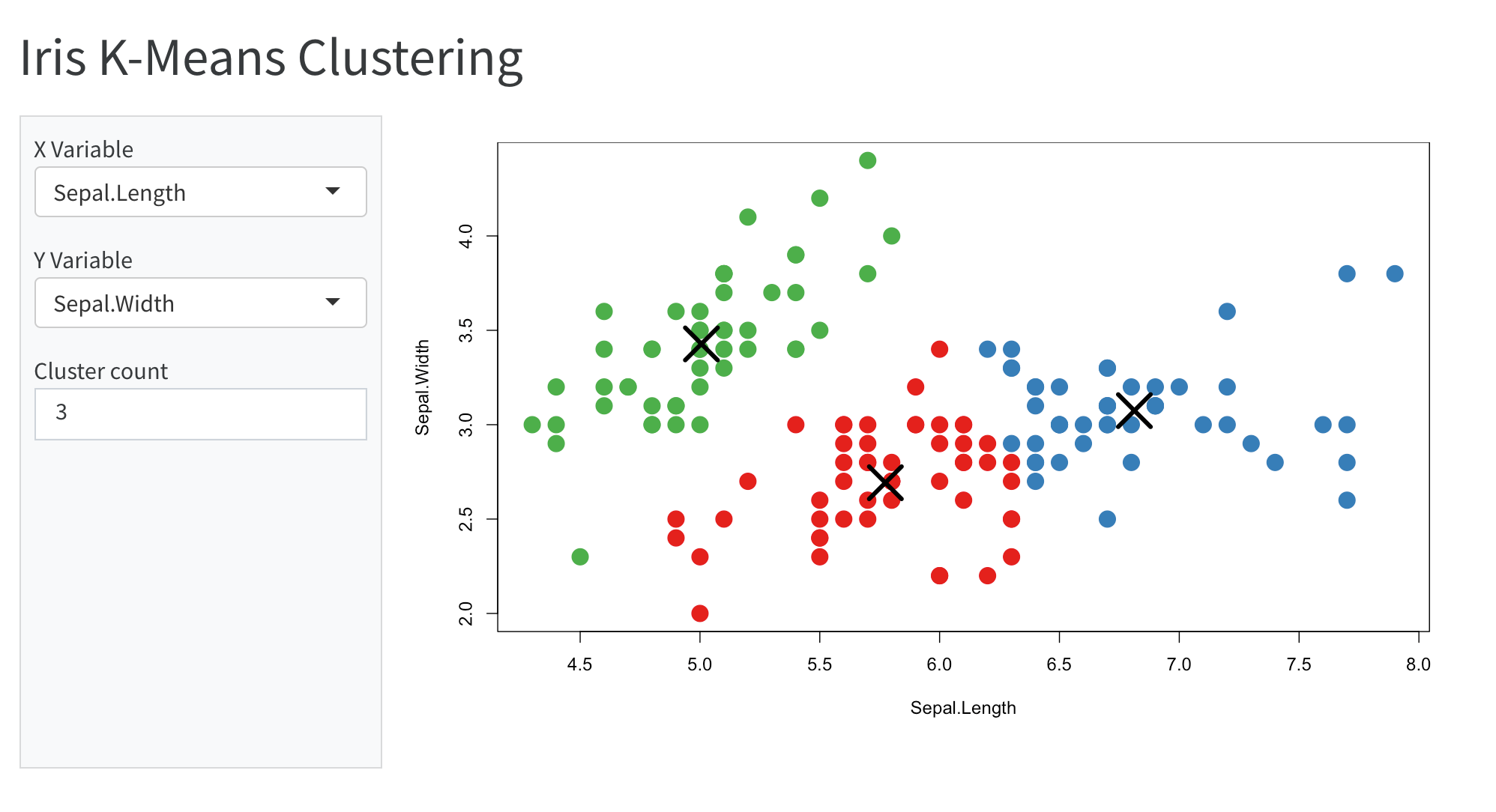 numericInput('clusters', 'Cluster count', 3, min = 1, max = 9)